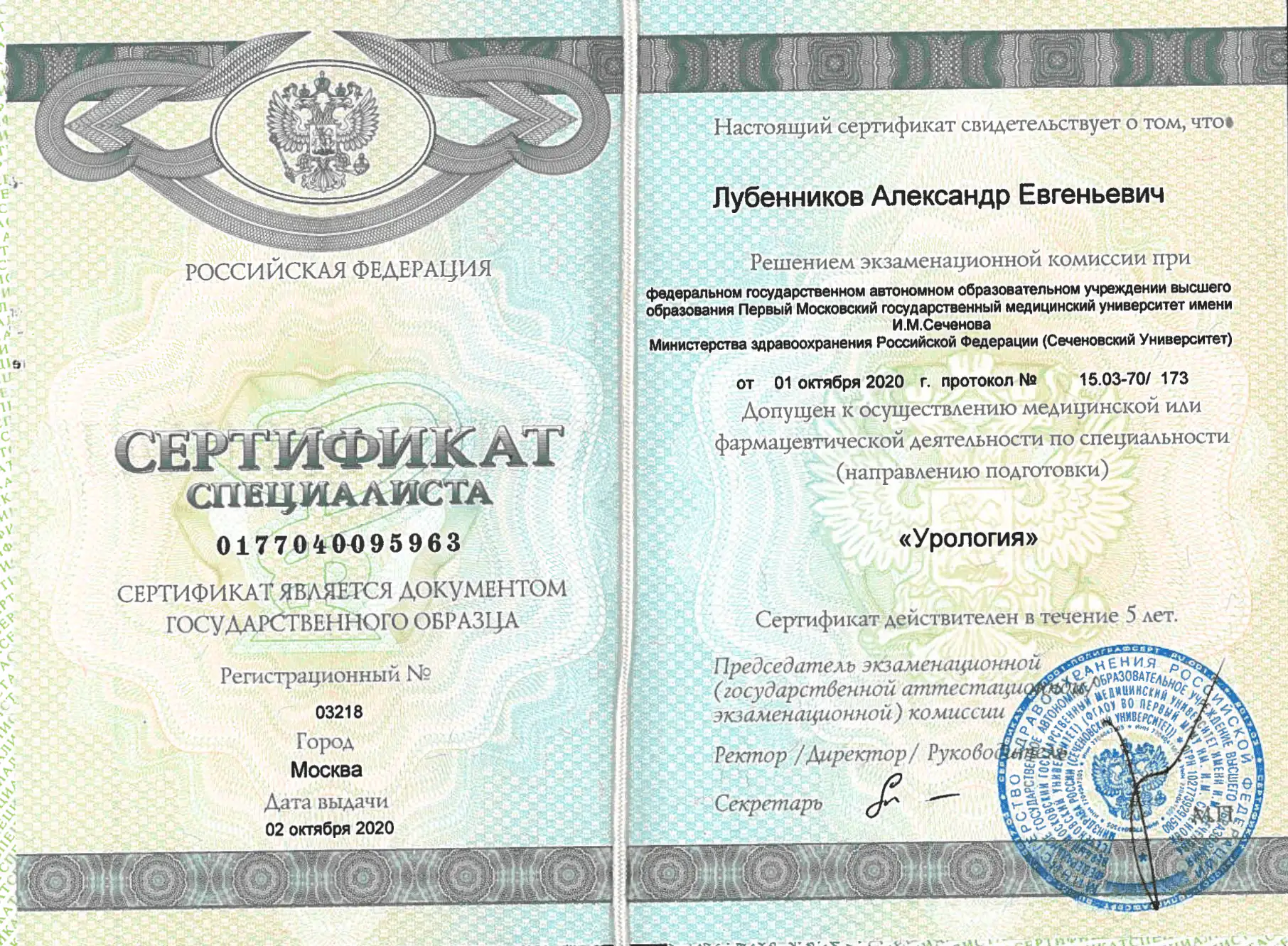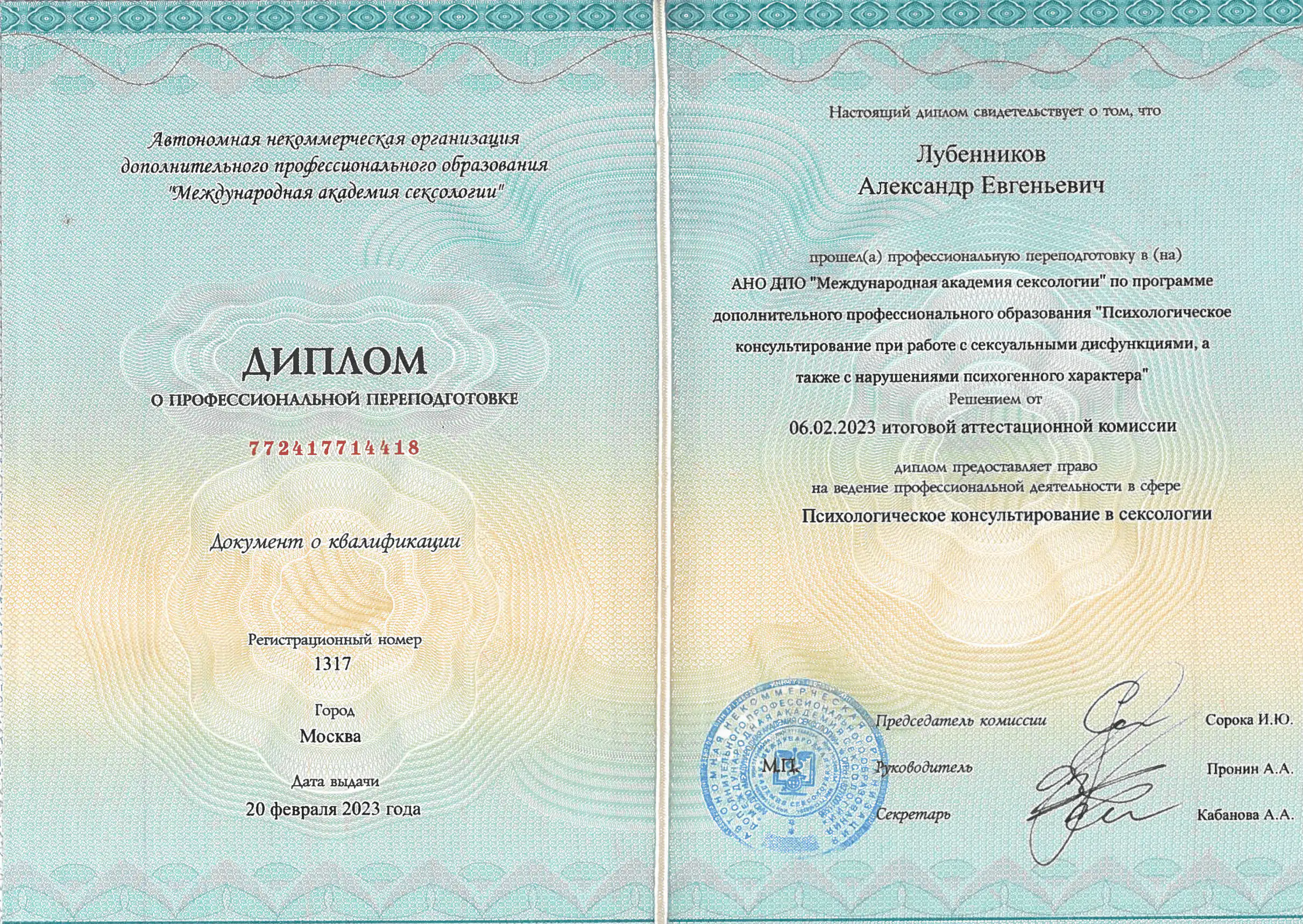 Лубенникова Александра Евгеньвича